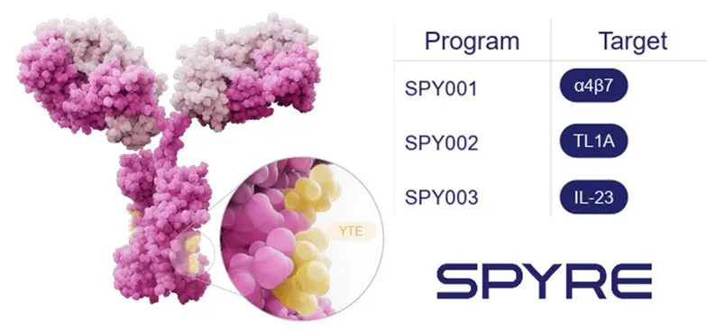 Spyre Therapeutics har antikroppar med tre olika verkningsmekanismer och dessutom förlängs halveringstid (YTE-teknologin). Källa: Spyre Therapeutics